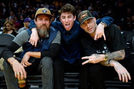 Adam Levine, Sam Levine e Shawn Tellez assistem a jogo dos Lakers