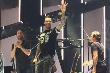 Adam Levine abraça fã durante show em Toronto